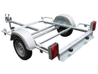 Remorque porte moto modulable avec châssis soudé galvanisé et feux arrières encastrés. Idéale pour transporter une à deux motos ou scooters selon le gabarit des engins.